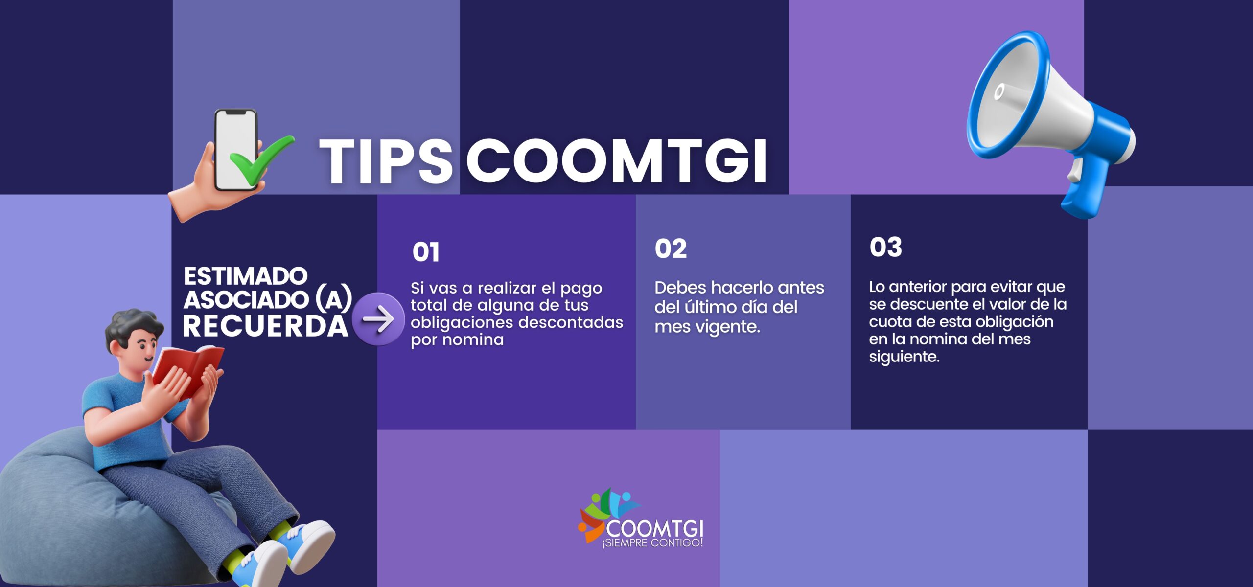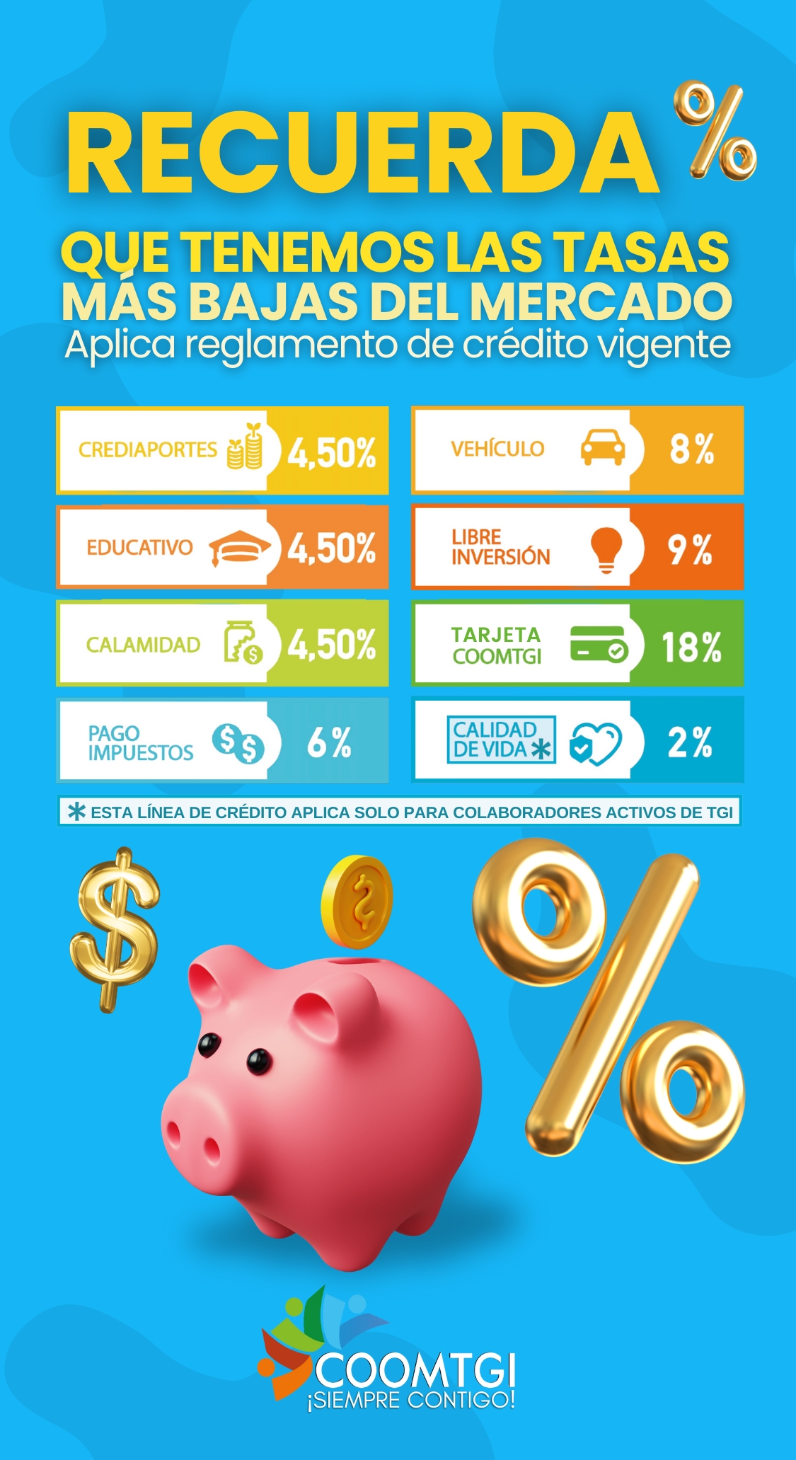 COOMTGI es una cooperativa sólida, confiable y eficiente que impulsa el crecimiento sostenido del bienestar social de sus asociados y sus familias. Ofrecemos soluciones financieras, programas sociales y un compromiso ético con la transparencia y la responsabilidad. En COOMTGI, trabajamos por tu presente y tu futuro.